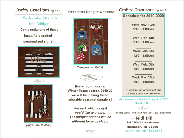 Sent 2019-11-19: Crafty Creations for Dec: Deadline for registration -